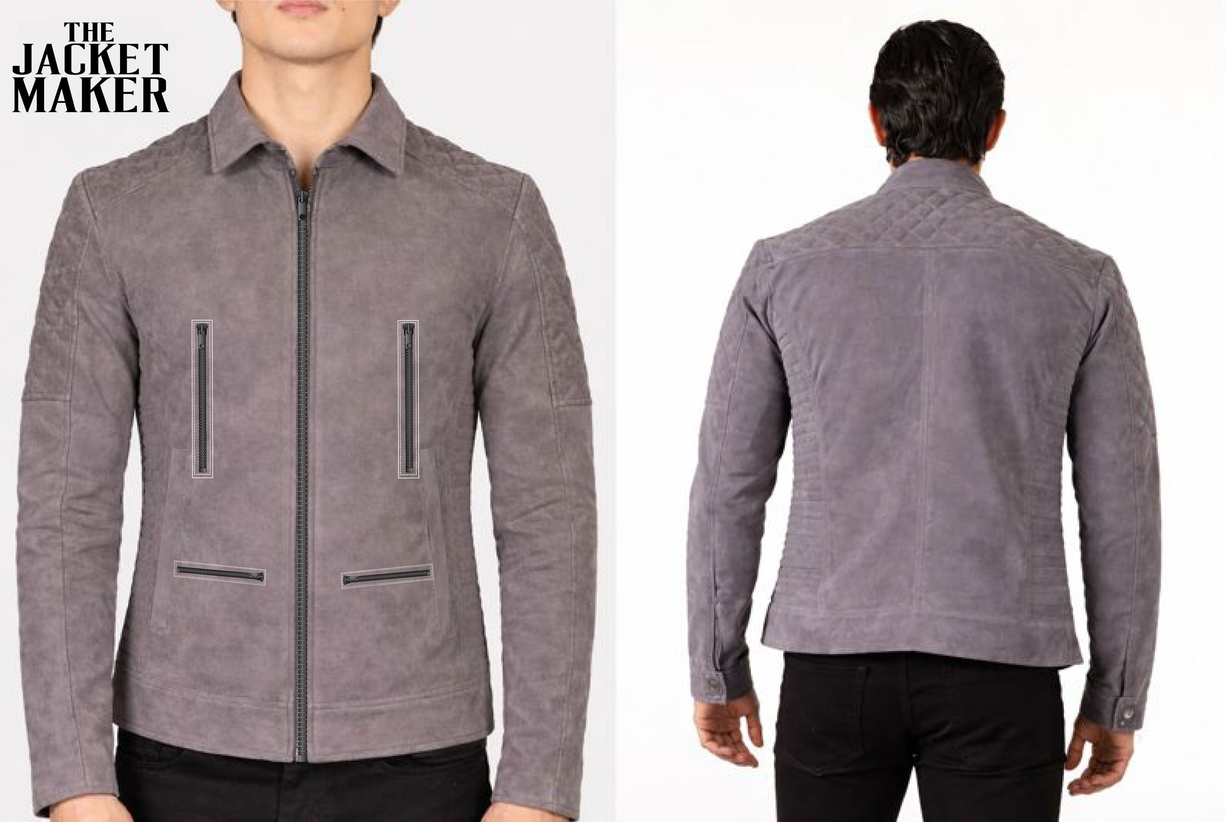The Fernando Quilted Suede Biker Jacket with the customizations you’ve outlined: